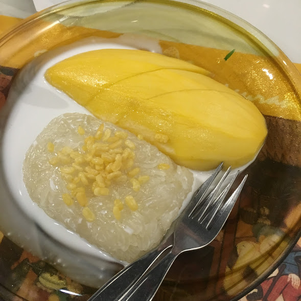 バンコク出国する前に必食なものが”カオニャオ・マムアン”マンゴーともち米のスイーツです。好き嫌いが分かれますが、私も食わず嫌いな一品で訪タイ3回目までは友人が食べてても絶対に食さなかったのですが、一口食べてみたらハマってしまい今では大好きです。空港内のタイ料理レストランならどこにでもあると思います。ただ私が入ったお店は新ターミナルにあるレストランでしたが22時が閉店のようでした。