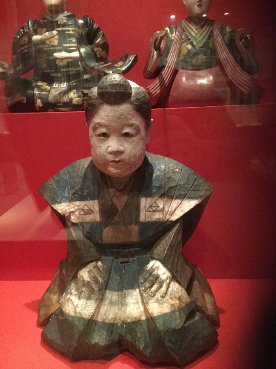 兜や鎧、大名のかごなど、日本の展示物も見ていて飽きないのですが、写真の作品のキャプション「聖徳太子」とあったのには、首をかしげてしまいました。同じ場所には、お内裏様とお雛様が展示されていました。