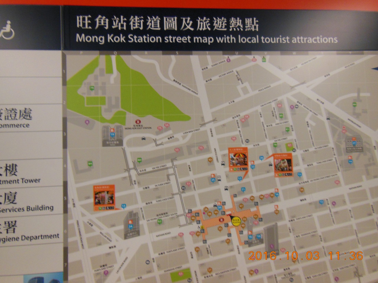 ランガムプレイスや女人街のある駅となり、MTRの階段を出た地上は繁華街のど真ん中です。駅の裏側?には生活感漂う朝市のような路地もあります。蛇料理を食べれる店などもあり最新の買い物とローカル雰囲気を味わえる駅となります
