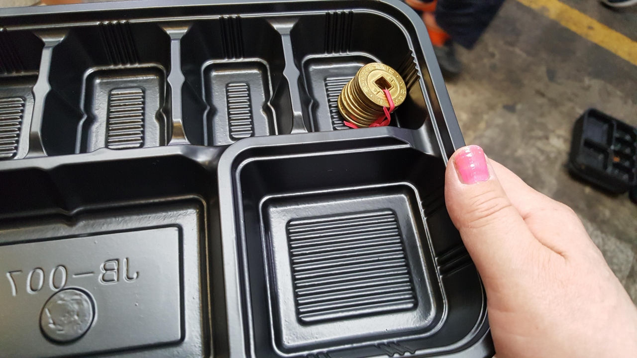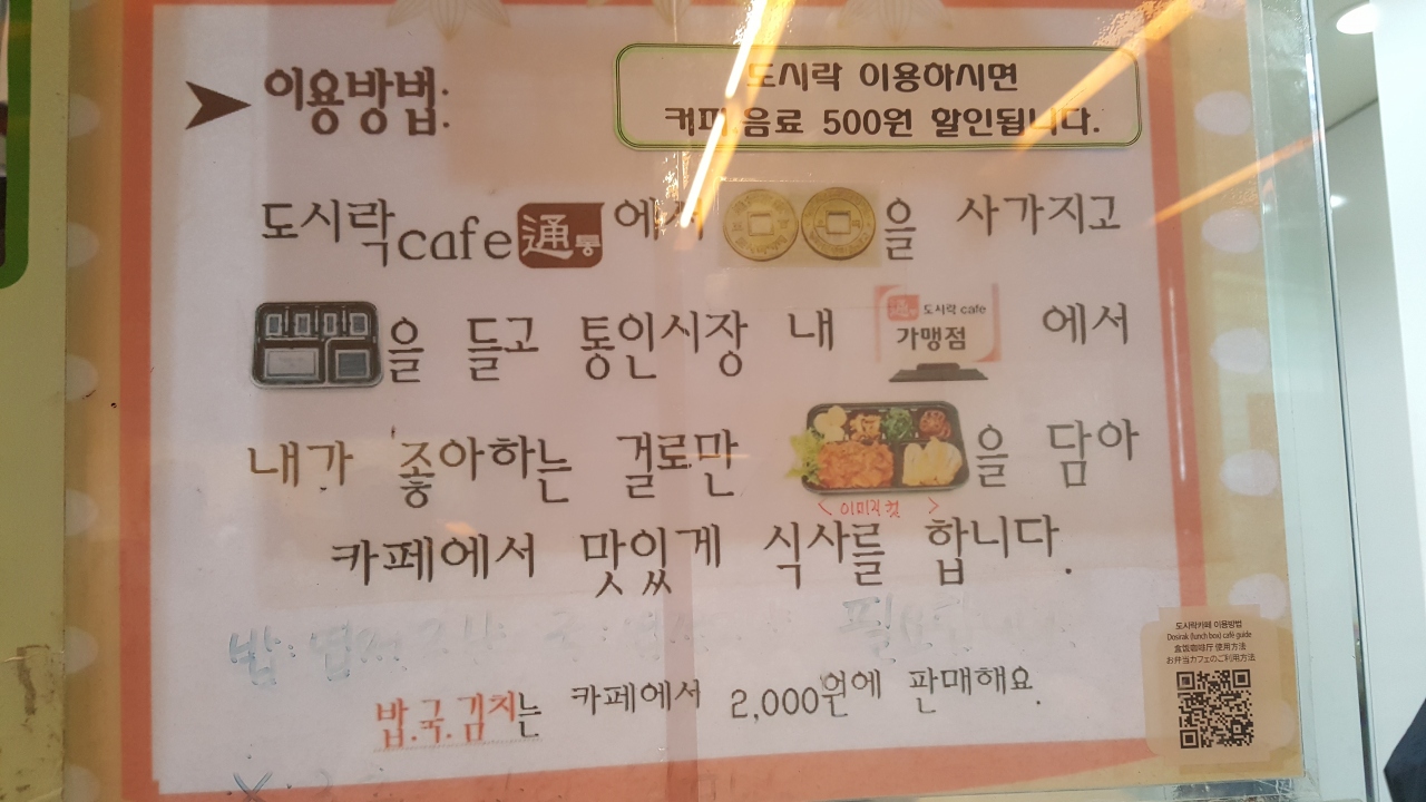 5,000ウォンを払うとプラスティックの空のお弁当箱とコイン10枚を渡されます。