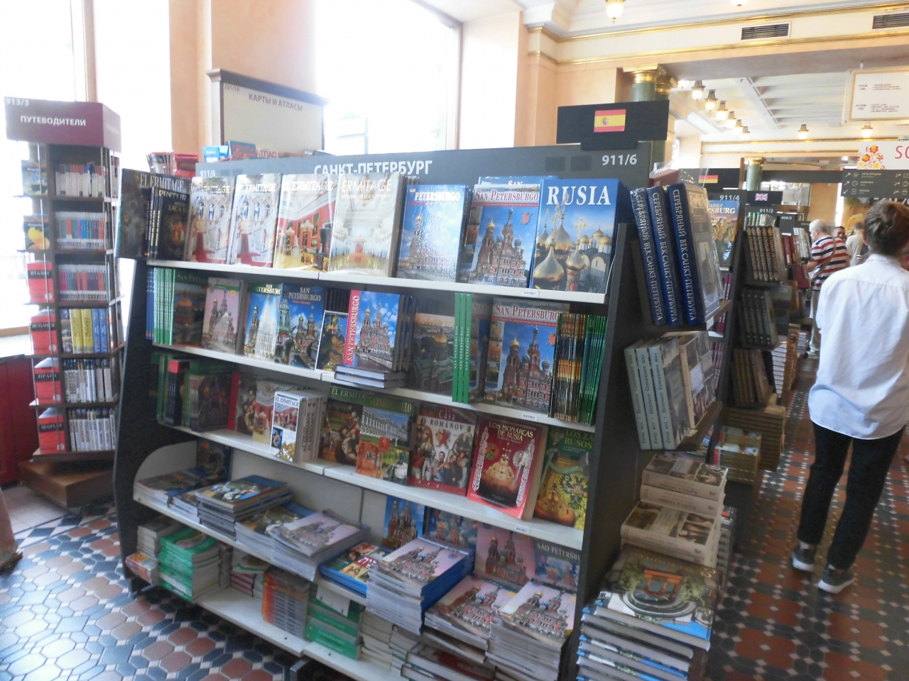 ネフスキー大通りに面しており、外観は少し暗い感じですが、中に入ると、本がたくさんです。サンクトペテルブルグもガイドブックは日本語を含めて多くの原語を」取り揃えています。文房具も充実しており、お土産物を探すのにも良いかもしれません。