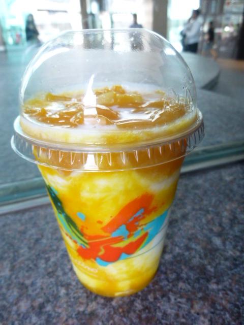 IFCのスタバが満席だったので、そばにあるこちらにきました。が、こちらも満席・・・。でも、こっちは階段に腰かけていただけるので。日本と同じくマンゴーフラペチーノがあったのですが、香港のはオレンジではなく、ヨーグルトで、マンゴーのクラッシュゼリーでした。季節的に、月餅のセールスもしていて、お国柄が出ていました。