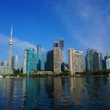 トロントを代表するタワーで、上は展望台になっていてトロント市内を一望できます。ただ、CNタワーのある景色がトロントっぽいので、トロントアイランドフェリーからCNタワーや高層ビル群の景色を眺めるほうがおすすめです。