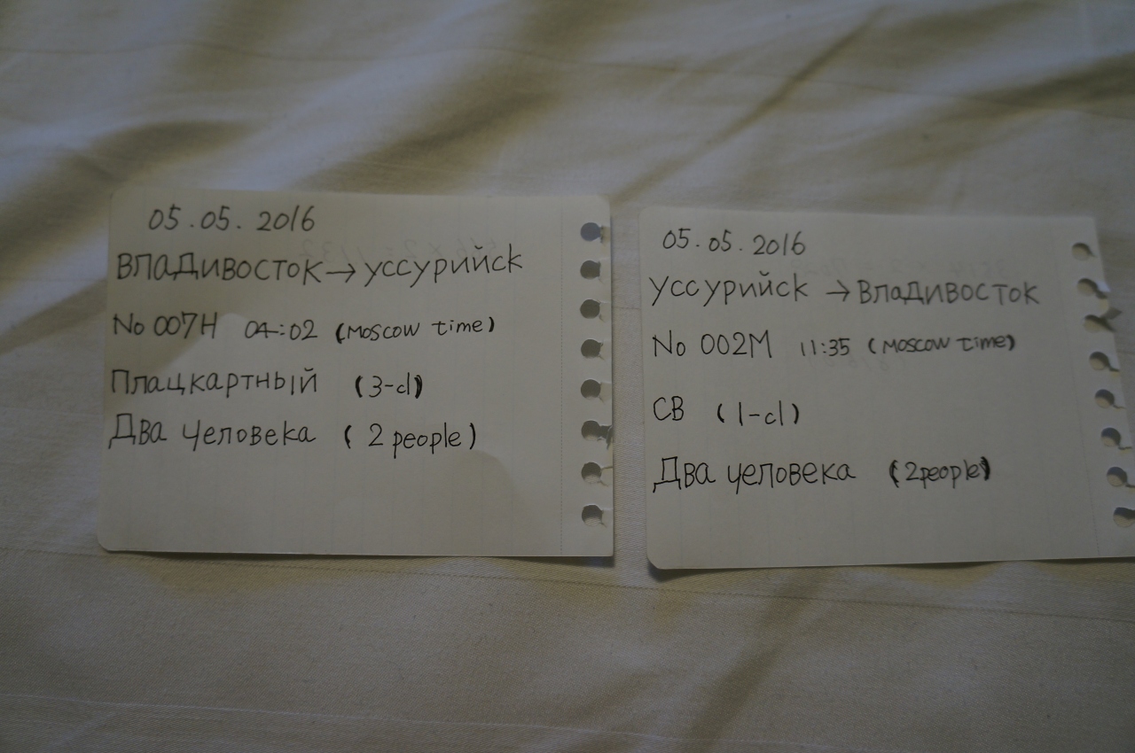 英語も通じないので、ロシア語でほしい切符の情報を書いて購入しました。