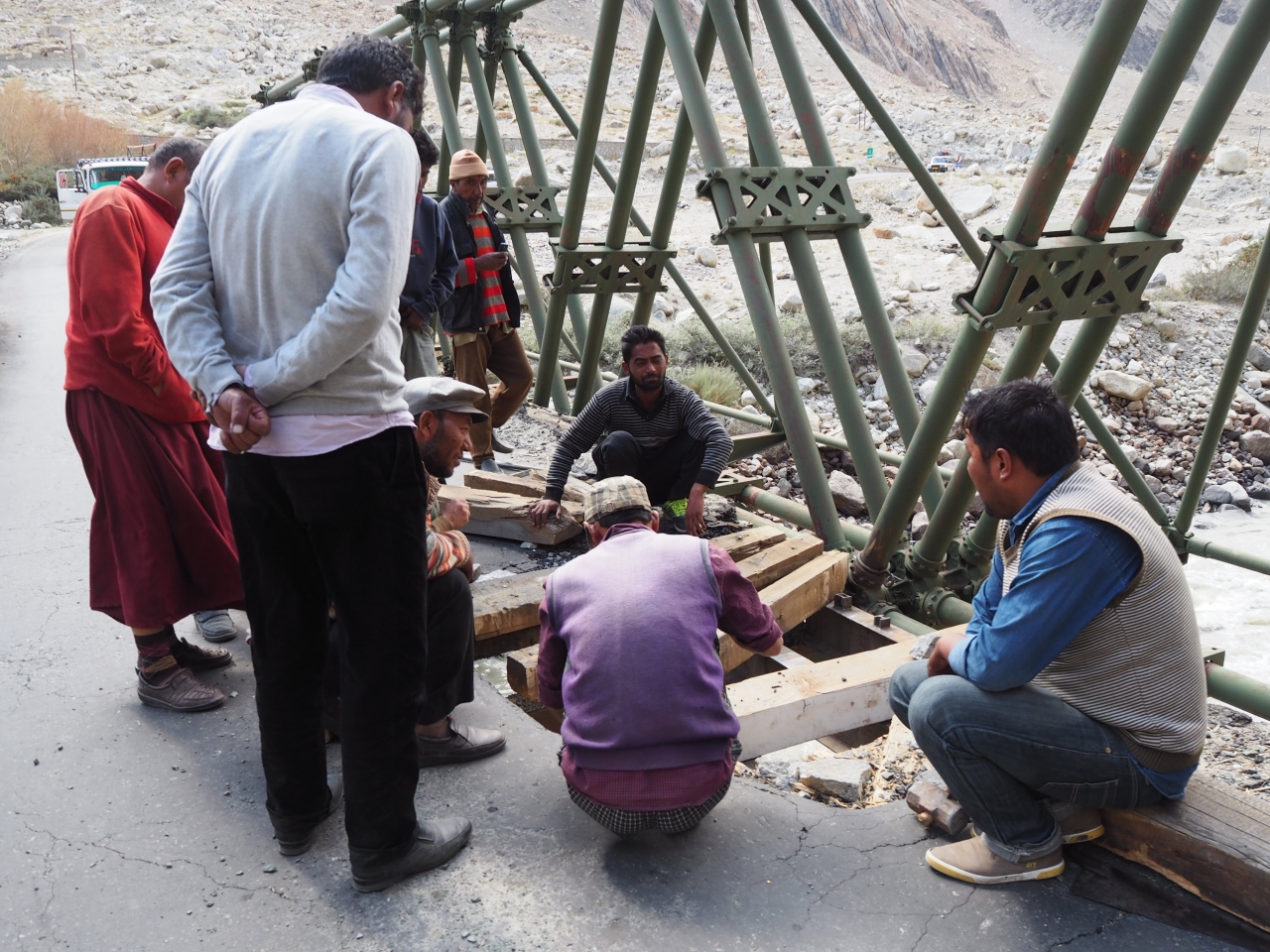タイヤがパンクしたり、橋を修理していたり・・・