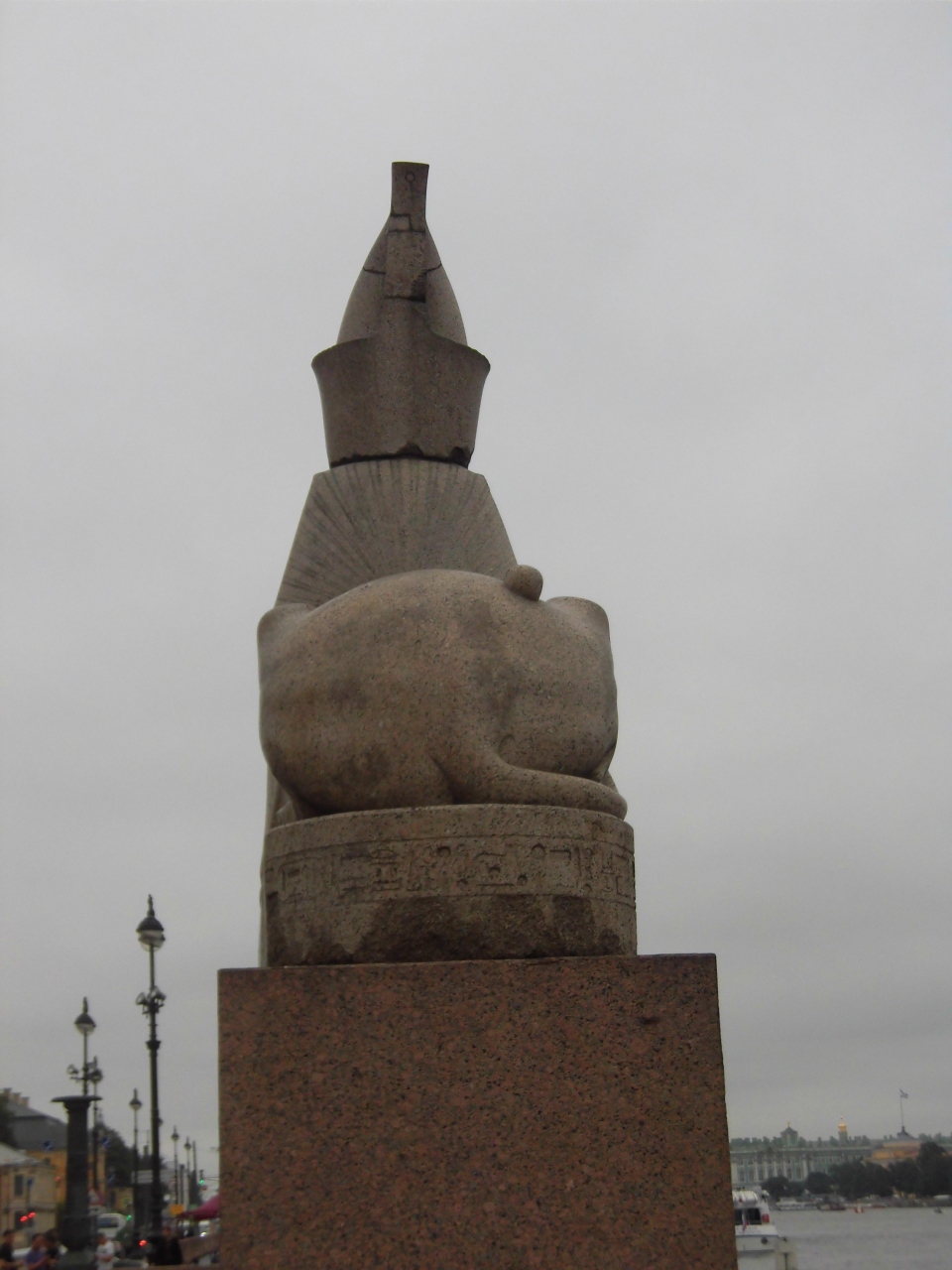 当初は、ヴァシリエフスキー島にある芸術アカデミーの庭に置いてありましが、1934年i今の様に船着き場の守り神の形になったそうです。このスフィンクスは後ろ姿がどことなくかわいいです。