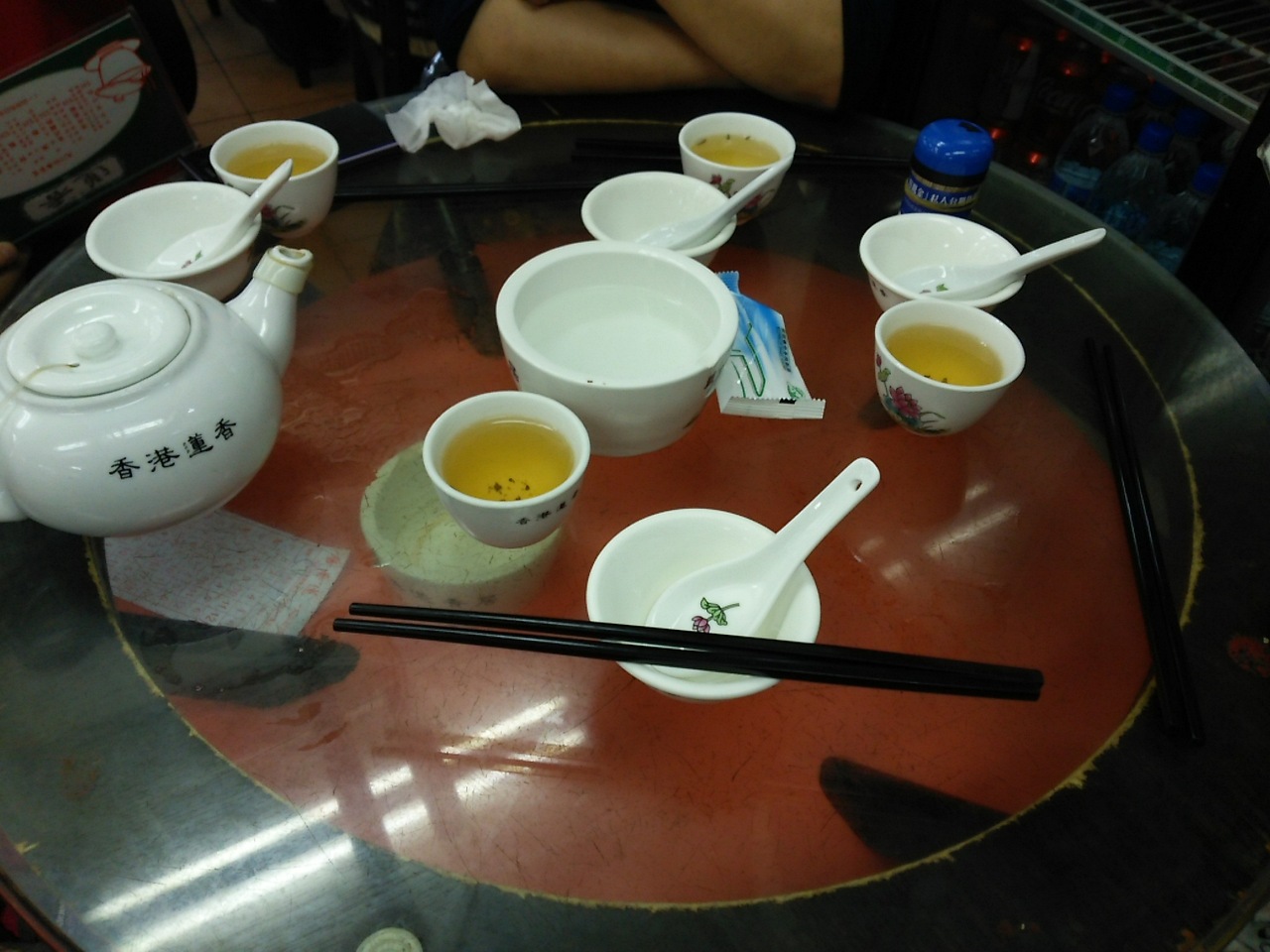 ワゴン飲茶を経験したくて行ってみました。ビルの2階3階が店舗。店内はお客さんでいっぱいです。通された席でお茶を注文、ソウメイ茶は初めてですが、美味しいです。