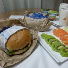 ハンバーガーは自分の顔くらいの特大サイズ。