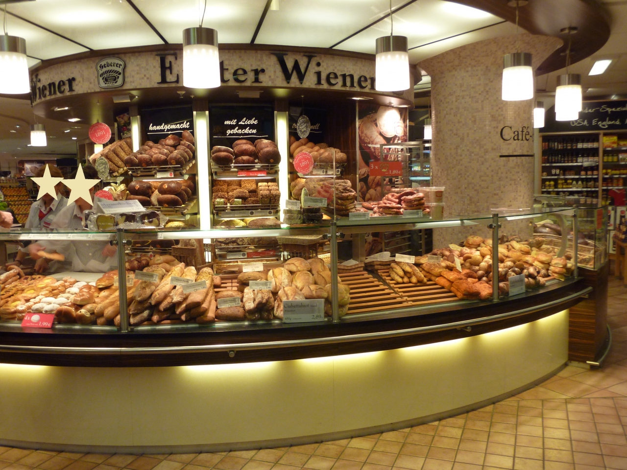 ドイツ屈指の大型デパートで、デパ地下の食料品街ではパンなどの他、チョコレートなど、お土産物探しも出来ます。4階までエスカレーターで上がると、リモワのショップがあり、新デザインのスーツケースが各種取り揃えてあります。我が家もここで二回購入してます。保証書があると日本に帰ってからでも無償修理ができるので安心です。