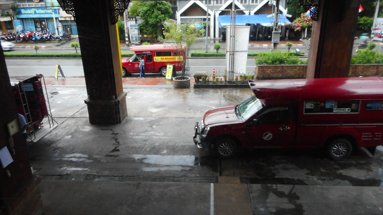 お濠の北西角(チェーン・フアリン)から伸びるフワイケーオ通りは、旧市街地からの赤バスの運行ルートになっています。