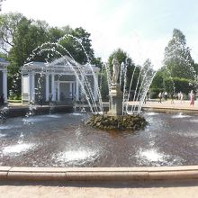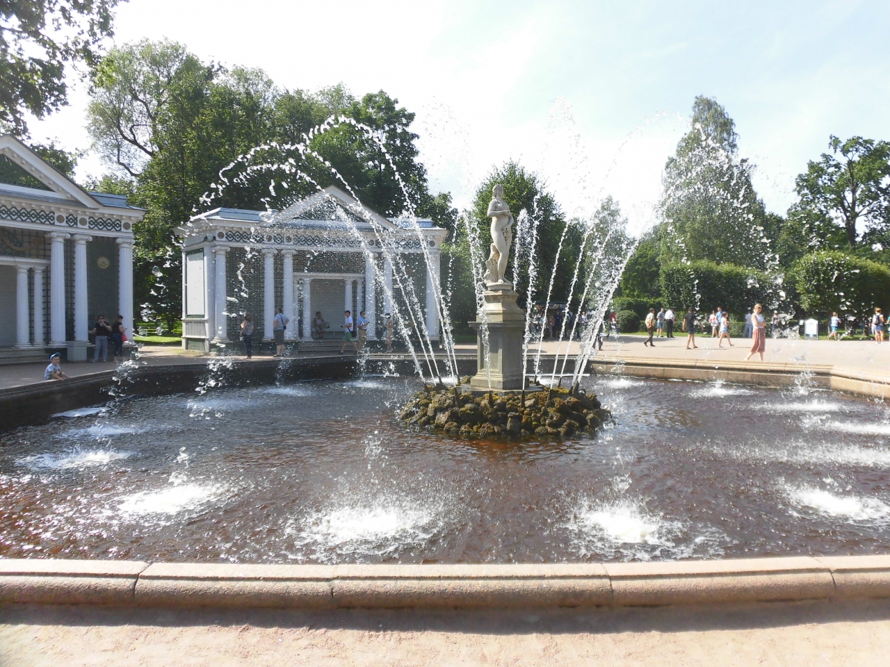 東側のアダムの噴水から真中の運河を渡ったところにイヴの噴水があります。これもベネチアのサンマルコ広場に面するドゥカーレ宮殿を装飾するアントニオ・リッツの作品を参考に造ったものだそうです。17世紀前半から、250年もの間、殆ど手を加えておらず、原型をとどめています。ドイツ軍も手出ししなかったようです。