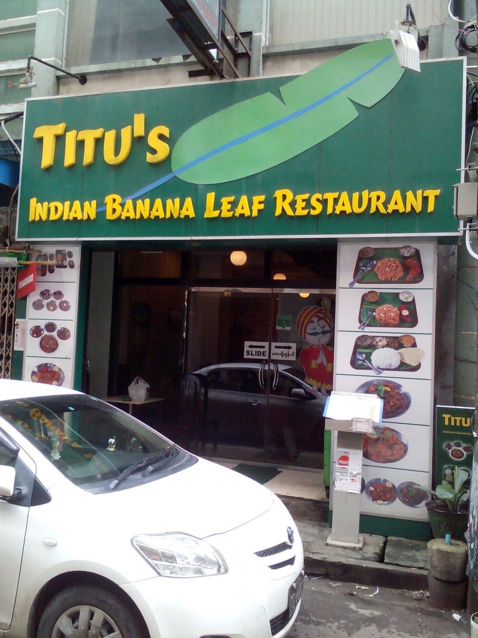 Titu's Indian Banana Leaf Restaurant はヤンゴンのダウンタウン、32ストリートにあり、スーレーシャングリラホテルの真裏に位置します。インド人の店主は日本に住んでいたこともあり、日本人客に日本語で話しかけてきたりしてフレンドリーです。料理の味は悪くはないのですが、周辺のインド料理店に比べると、料金は高めです。