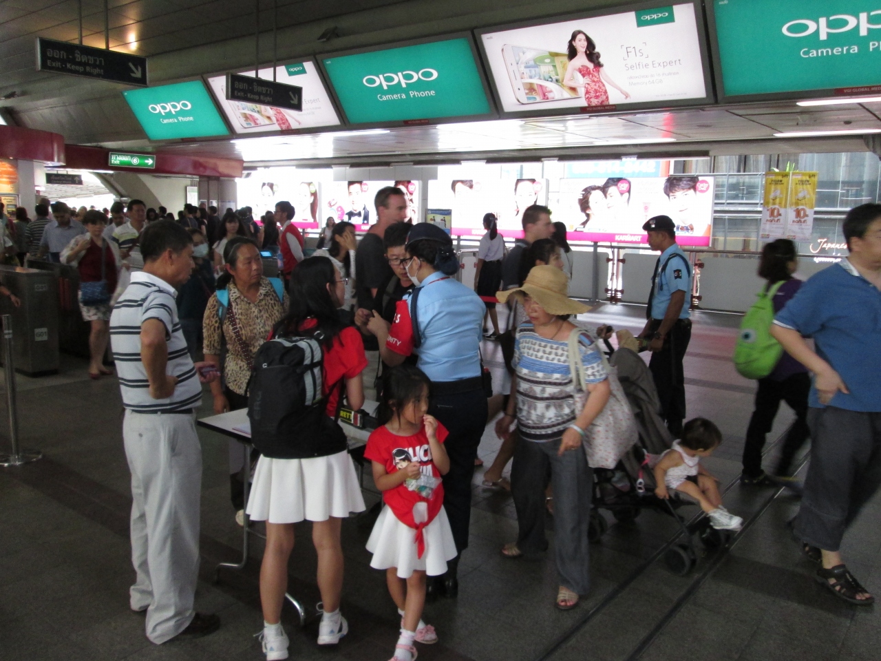 2016年8月11日、タイ中部から南部の複数カ所で爆発事件が発生しました。BTSの各駅では警備が強化され、乗車する際、改札口を抜けると警備員による荷物検査がありました。利用客が多い駅のため、ひとつの改札口だけで警備員は2人配置されていました。