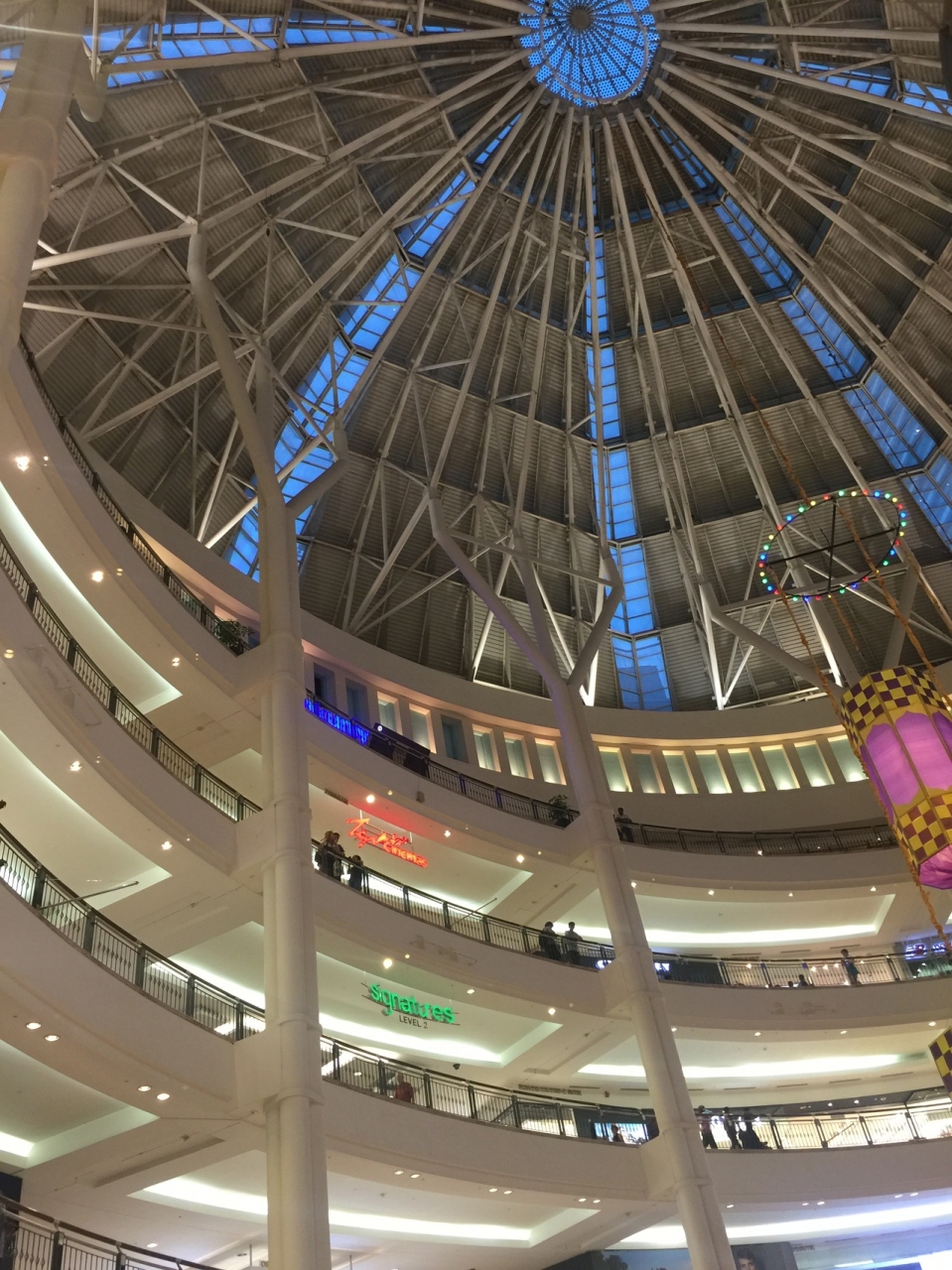 中にはテナントがたくさん入ってます。伊勢丹やユニクロ等の日本企業も入ってます。トイレは有料でビックリ。やはり夜景がイイですね!