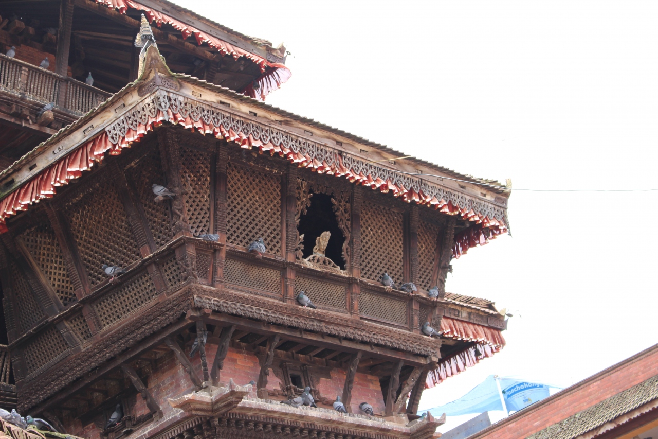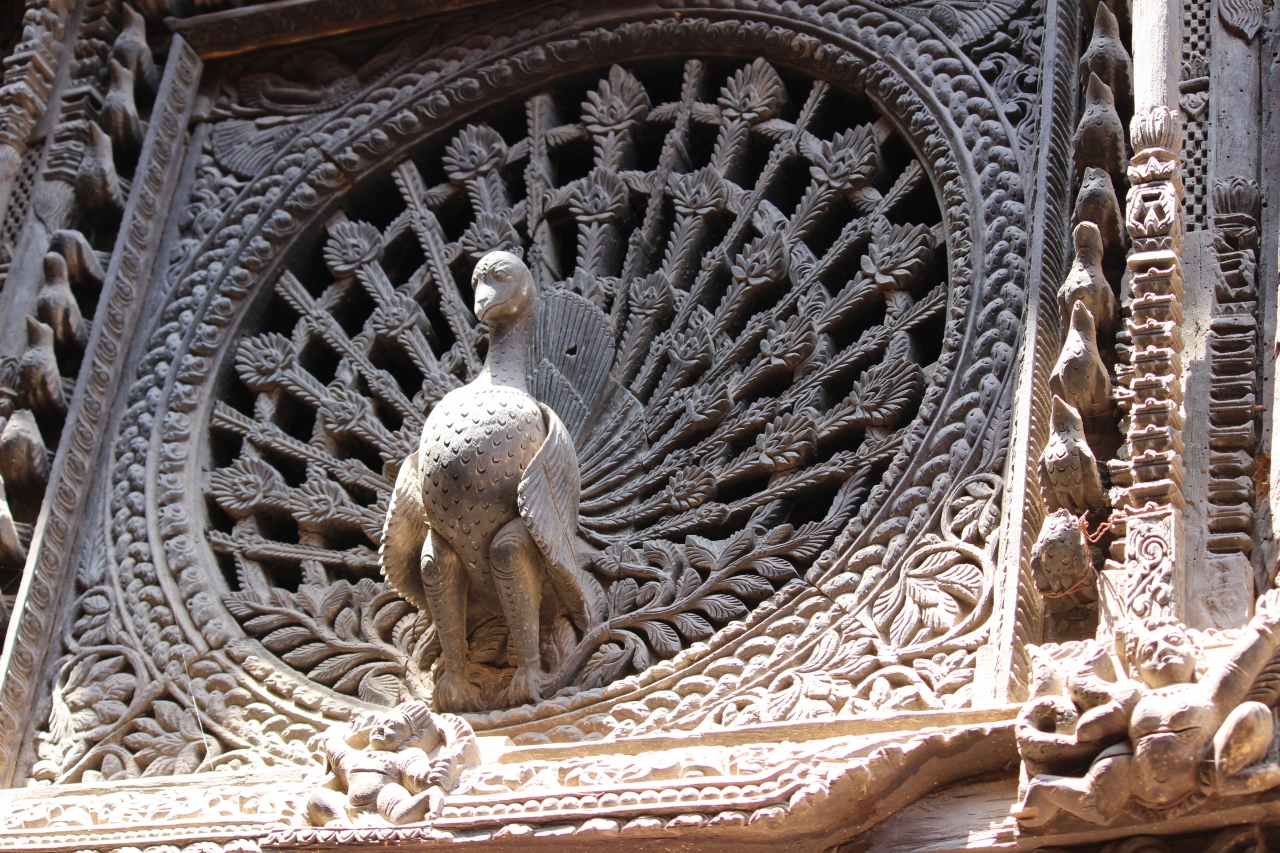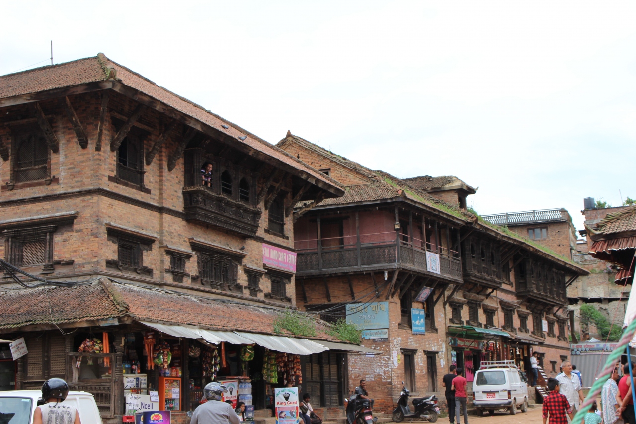 カトマンズから約1500Rp(=¥1500)片道料金であるが、バクタプルからの帰りは、概ね1000Rpである。つくと入口で、都市への入場求められるが、確か$15だった気がする。ダルバール広場からトウマディ広場を経てタチュパル広場につくが、ダッタトラヤ寺院が中央にある。人の裏のパティの前の道の路地が孔雀窓の路地である。