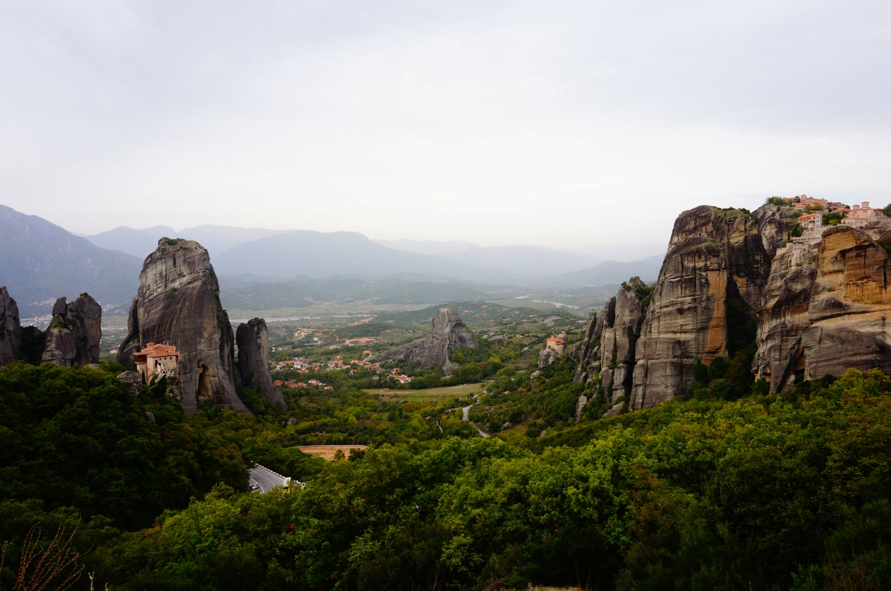 メテオラには、世界遺産になっている6つの修道院が切り立った崖の上に立っている。回りも奇岩、岩群で素晴らしい風景が広がっている。この6つの修道院は、離れていそうに見えるが、意外に歩いて回れる。1日半あれば全部回りきれるので。絶景を見ながら歩いて回ったほうがすばらしい自然をより感じ取ることができる。