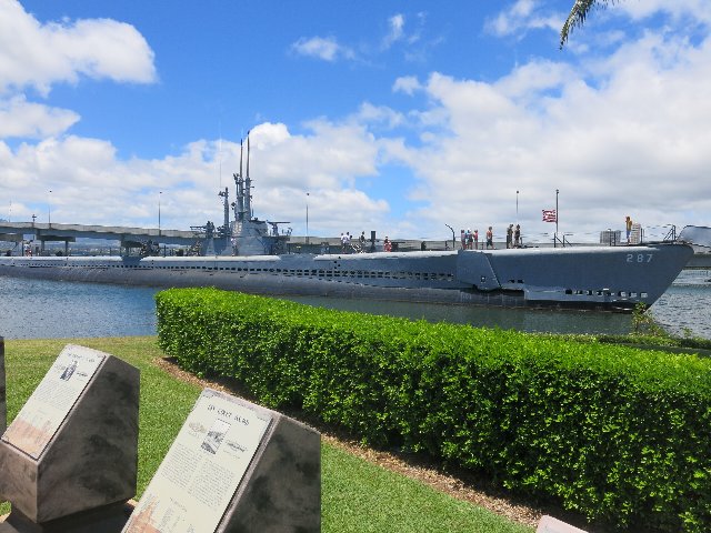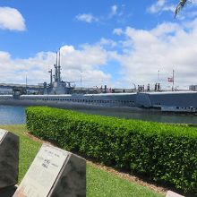 ヒストリックサイトの西側に停留している潜水艦は実際に使用されたもの。