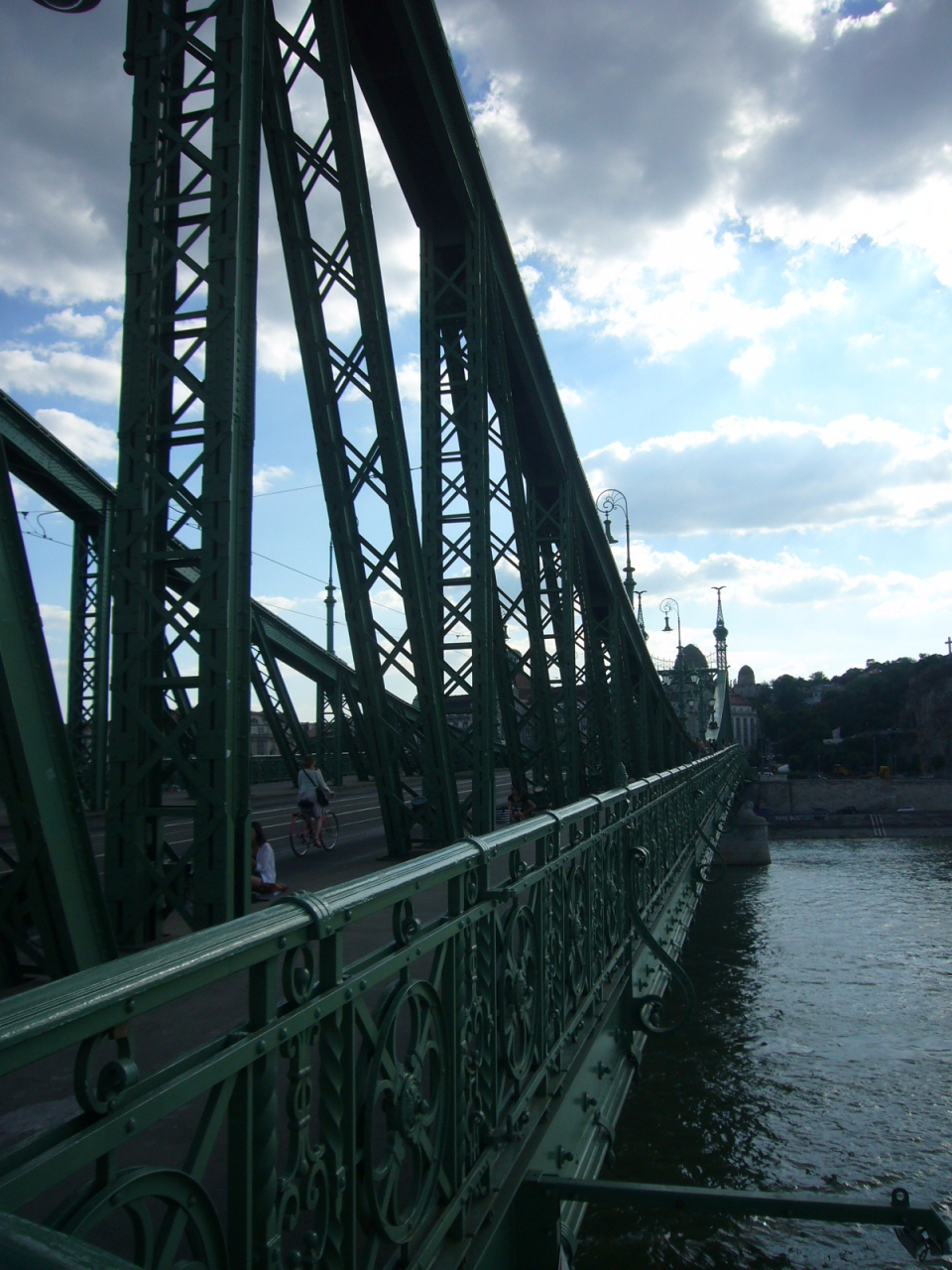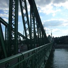 中央市場とゲレルト温泉を結ぶ位置にある、緑色の橋です。トラムはあるようですが、ほぼ歩行者と自転車の専用の橋になっており、みな自由に歩いています。橋からの眺めもいいです。橋を渡るだけでなく、欄干の上で寛いでいる人なども見かけました。