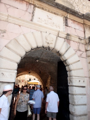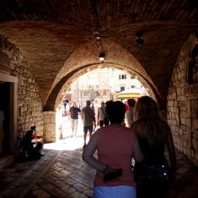 シンプルなアーチの門は背が低く通る瞬間はちょっと圧迫感がありますが、門を抜けた後に見える武器広場、時計塔の景色をみるとまるで中世にタイムスリップしたような気分になります。