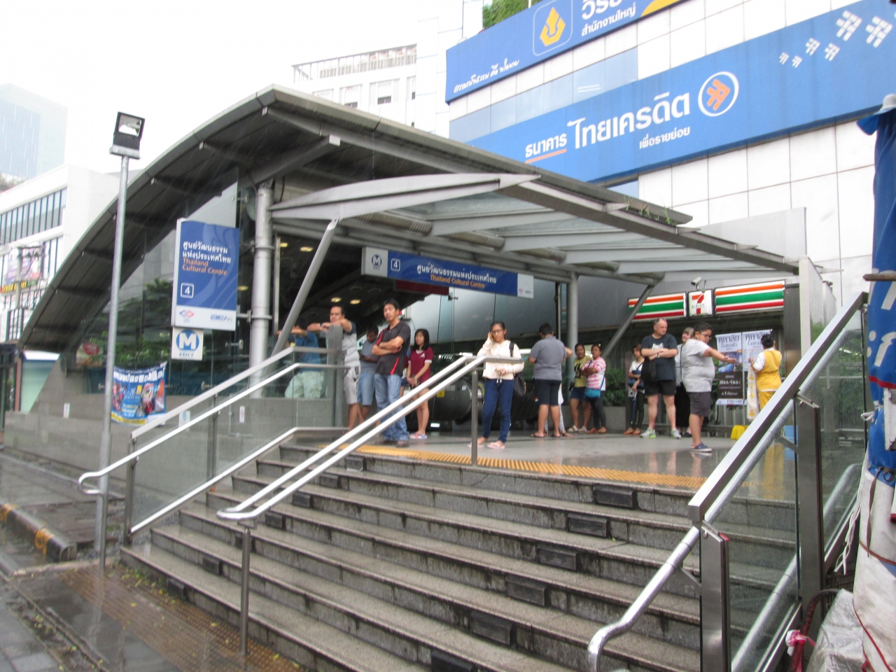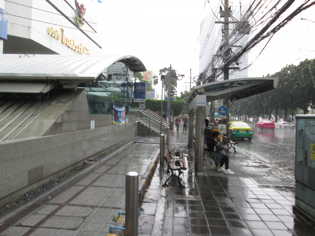 10月のバンコクは雨季が残っていました。外出するときは快晴でしたが、途中から雲行きが怪しくなり、駅に到着したときに突然バケツをひっくり返したような大雨が降ってきました。駅の出口で雨宿りをしている人たちがいました。折り畳み傘を持参していたのでずぶ濡れになることはありませんでしたが、夜間だけでなく、日中も雨が突然降ってくる日がありましたので、折りたたみ傘を持参した方が良さそうです。