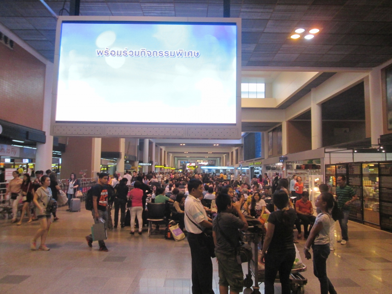 出発階に到着すると、たくさんある椅子が塞がっていました。預ける荷物と機内に持ち込む荷物を椅子で整理したかったのですが、脇の床で行いました。東南アジアらしいエネルギッシュな空港だと思いますが、利用客に対して空港のキャパがないのでしょう。