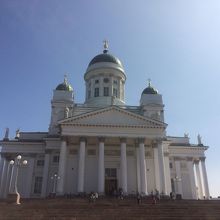 堂々とした白亜の大聖堂です。中に入ると大空間に圧倒されます。北欧ではメジャーなルター派(プロてスタント)の教会だそうです。プロテスタント系なので内部の装飾は比較的簡素です、ちなみに、フィンランドはルター派が8割、正教会が1割とのこと。ヘルシンキで一番の観光スポットだけに、正面の元老院広場は観光バスの臨時駐車場と化していました。