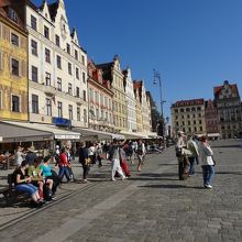 市庁舎前に広がる旧市場広場。美しく再建された街並みや石畳が素晴らしい。この街にはあちこちに妖精がいて観光客をおとぎの国に行かせてくれる。金属製の小さな可愛い妖精たちが、市場広場のあちこちにいて、それらを見つけるのもとても楽しい。