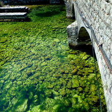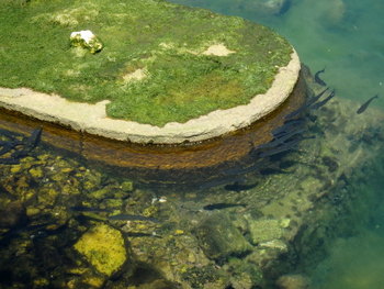 川には魚がたくさんいて、橋の上からでもよく見えました。