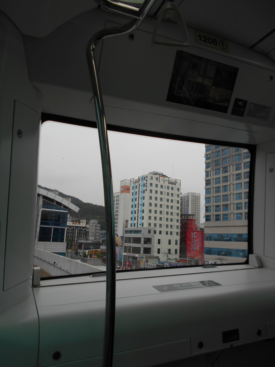 金海空港の国内線ターミナルにあるセブンイレブンで、T-Moneyカードを購入し、10000ウォンをチャージして、道路向かい側にある金海軽電鉄の空港駅から沙上駅まで利用しました。 特に問題なく、地下鉄乗換も少し歩くけど順調でした。一番前の席に座ると見晴らしいいです。
