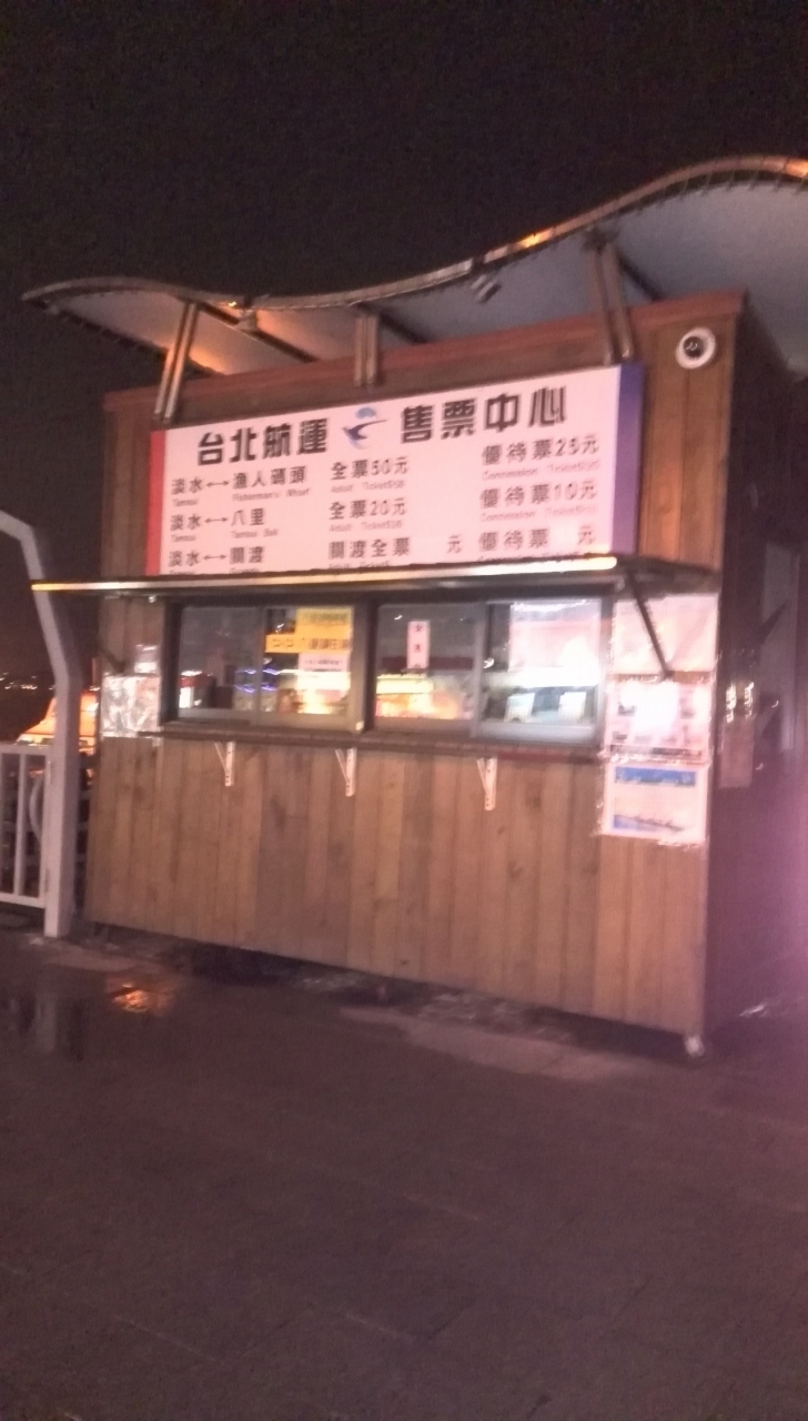 淡水老街にあります、河沿いに行列が出ていて、船が停まっていれば、そこです。行先とチケット代は小屋に表記されています。そこでお金を払って買います。運行時間が書いてあるところと、特に書いてない所があるので、余裕を見て乗ってください
