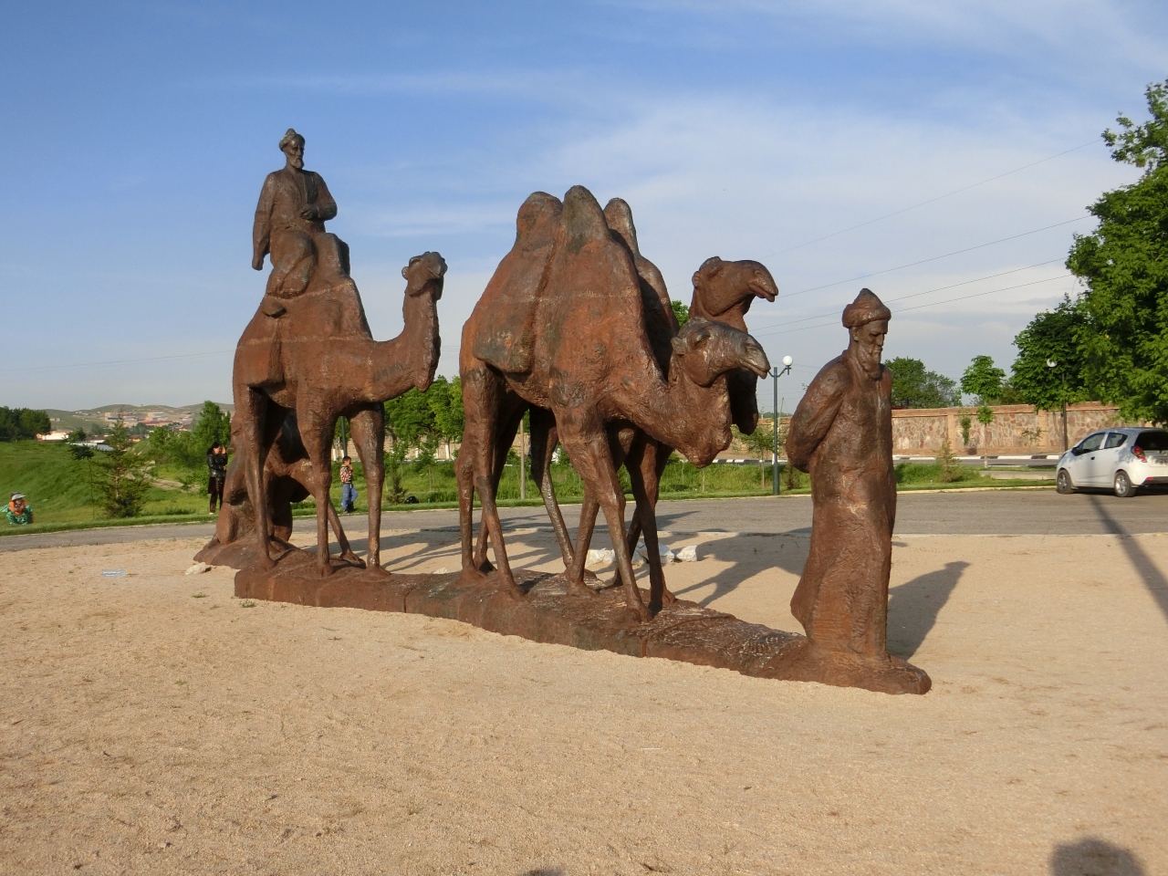 広場にあるこの像は、駱駝の隊商でしょうか?