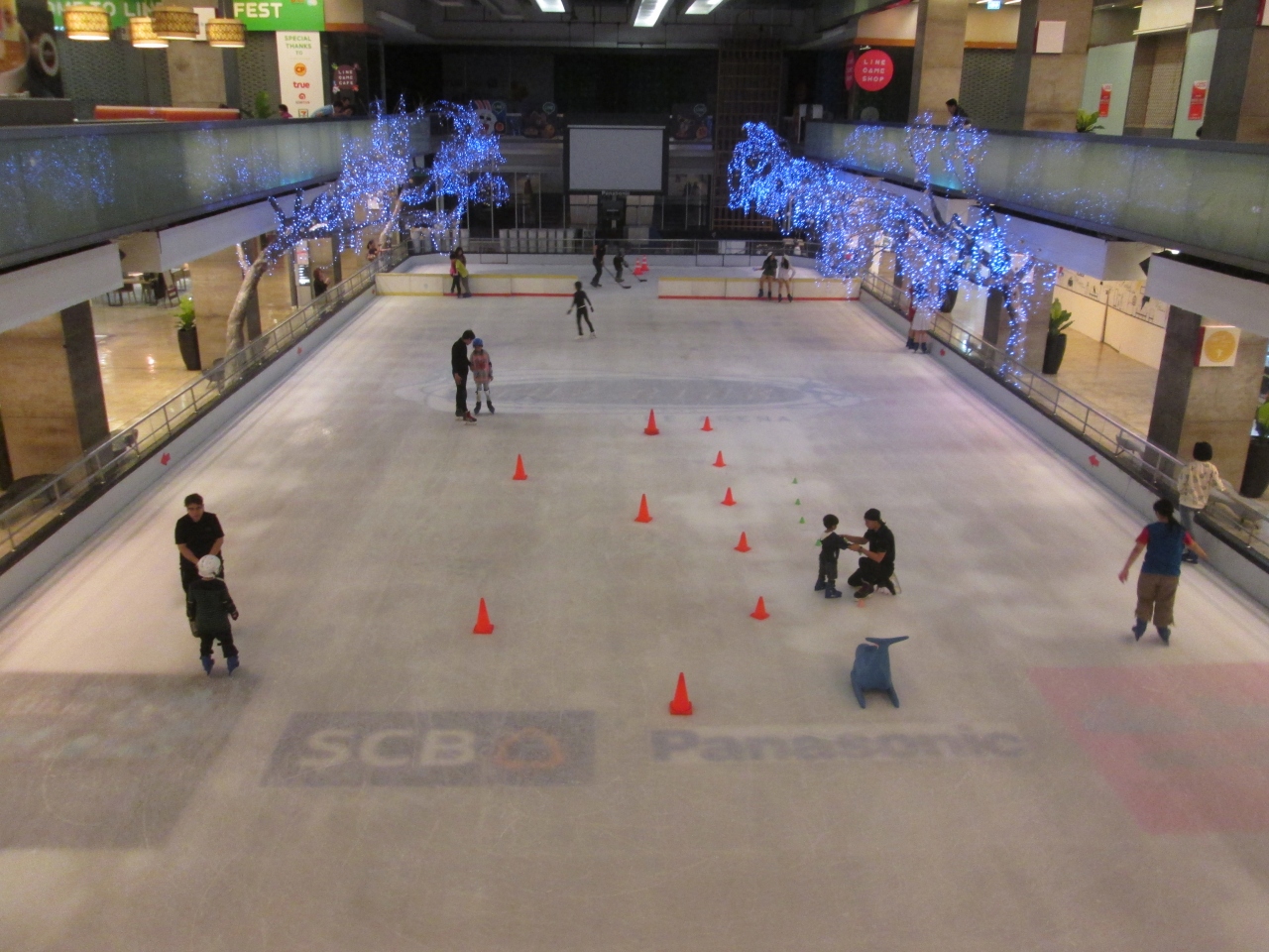 おそらく、バンコクで唯一と思われるスケートリンクが特徴的です。セントラルワールド内の1階に突如現れるスケートリンクは広くて圧巻です。吹き抜けの上階から眺めると、プロの域で滑っている人もいれば、南国では味わえない氷上の楽しんでいる人を見かけます。