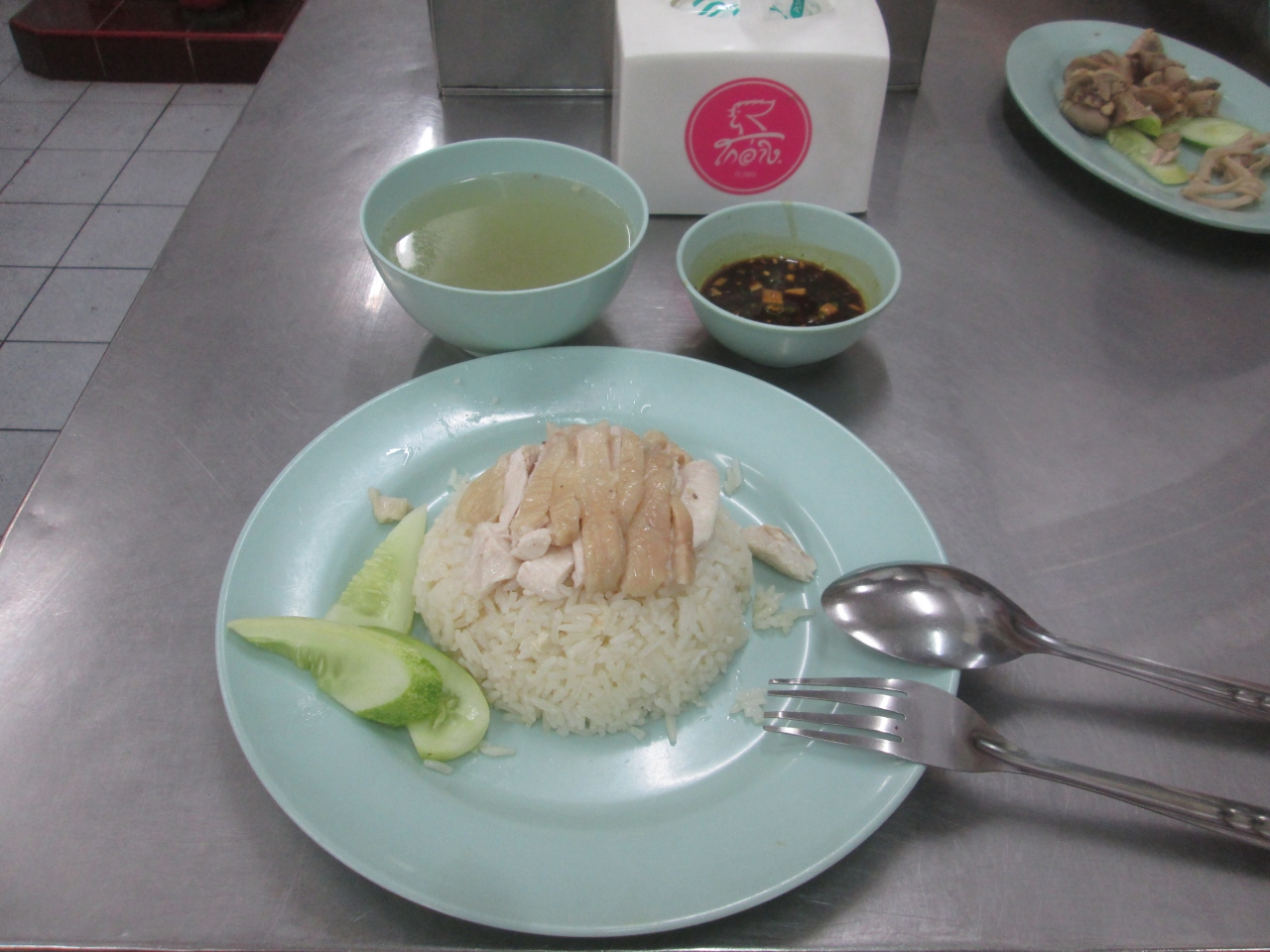 夕方17時30分からの営業と思われますが、18時前に到着すると、すでに行列ができていました。それでも10分ほど待ち、さらに10分ほど待つとチキンライスが提供されてきました。夕食のピーク時前であってもこの盛況ぶりなので、すごお店でした。