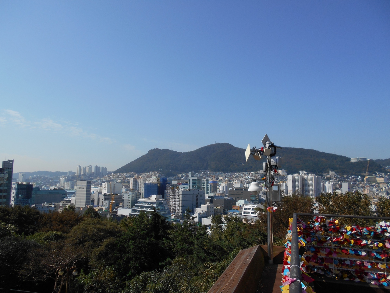 釜山の小高いところに龍頭山公園があります。眺望がよく釜山タワーがあり、広い駐車場もあるので観光客が多いところです。 大きな鐘や将軍像などもあって、記念撮影するのにいいです。樹木が多く、地元の人たちが韓国の将棋みたいなゲームをしたり、ジョギングしたりしてました。 港側に登りのエスカレータがあるのでちょっと楽できました。