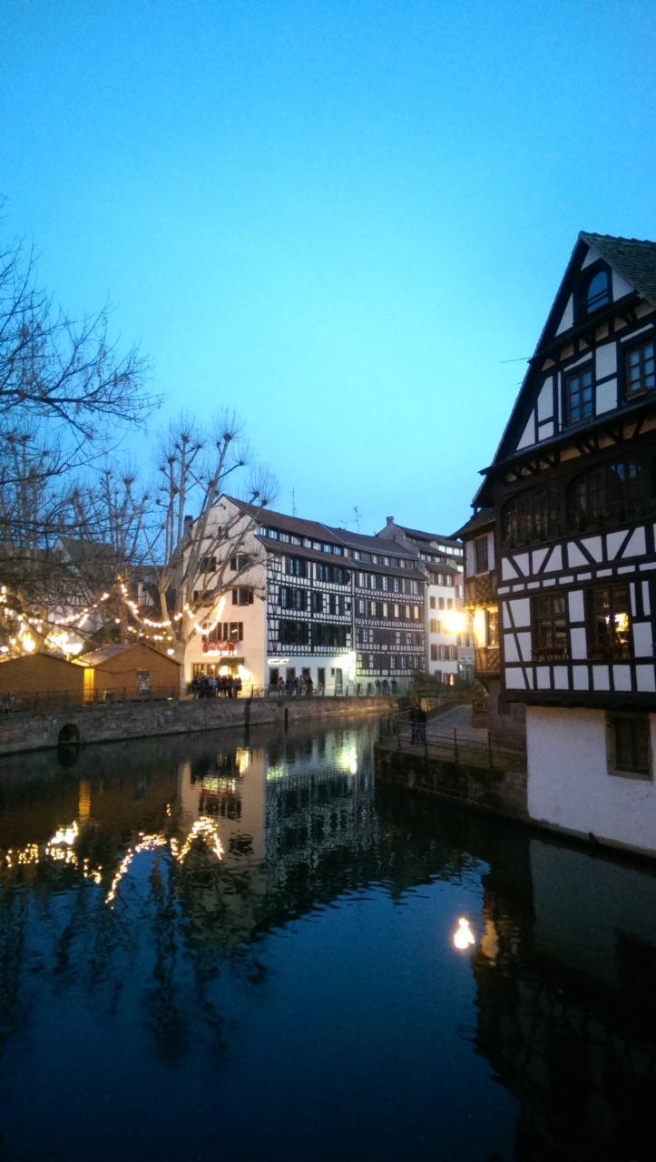 イル川がいりくんだ流れの間に木組みの家やかわいいプチホテルがちょこちょこあって、とても可愛らしくてアルザスの都市ストラスブールならではの洗練された景観がひろがっています。