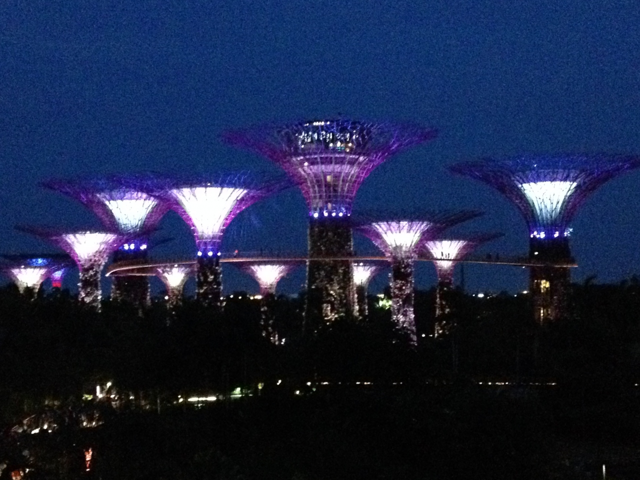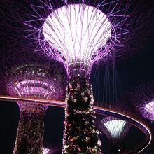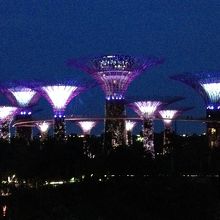 日中は暑くて歩けない程なのでカートのような乗り物でフラワードームまで往復しました。有料ですが風が気持ちよく快適でした。夜のガーデンラプソディは音楽に合わせて色が変わり感動的です。ツリーの真下で観たので迫力がありました。