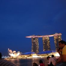 マリーナベイサンズ前でやっているショーですが対岸のマーライオン公園から観ました。音も殆ど聞こえず内容はよくわかりませんでしたが、水面に当てるレザーはとてもキレイでした。公園には広い階段があるのでゆったり観ることができます。