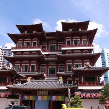 チャイナタウンからマックスウェルフードセンターへ行く途中にありました。赤色が中国を象徴しているようでとても目立っていました。入口付近ではお祈りに来られた方でしょうか、たくさんの人が行き来していました。まだ新しい建物のようで綺麗でした。
