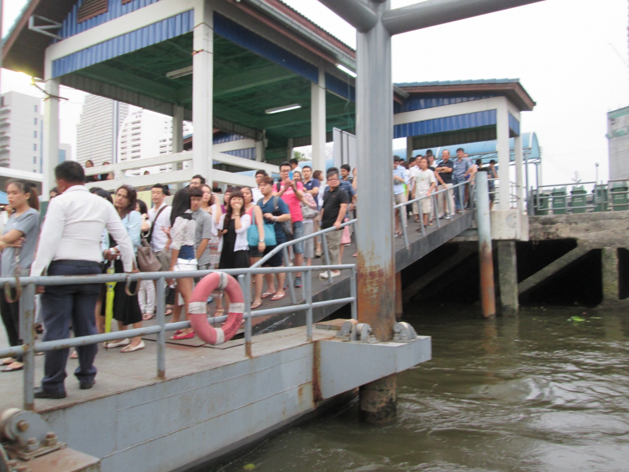 サトーン船着場には、各船着場に1つずつ停船するボートもあれば、観光地が最寄りの主要船着き場にのみ停船する快速ボート「チャオプラヤー・エクスプレス」が運航しています。到着すると、通勤ラッシュが始まったのかたくさんの乗船客がいました。市民の通勤の足となっています。