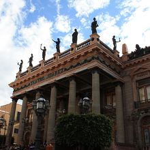 街の規模にしては立派すぎるような、ヨーロッパにあるような石造りの立派な劇場です。劇場の前はいつもピエロや大道芸人が観光客を盛り上げていて、特にラパス広場との間は満員電車を思わせるような激混みっぷりでした。