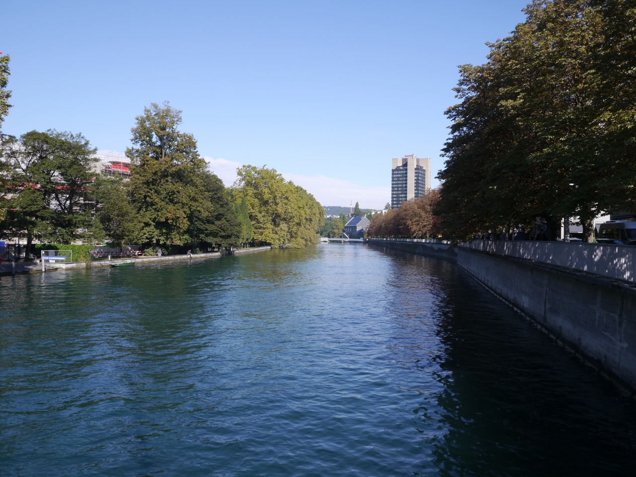 チューリッヒ湖から流れ出て、チューリッヒ市街地を南から北に貫くリマト川。