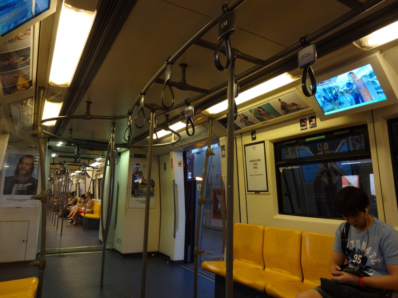 窓にまで企業広告が施されてはいるものの、車内からはちゃんと外が見える(笑)。