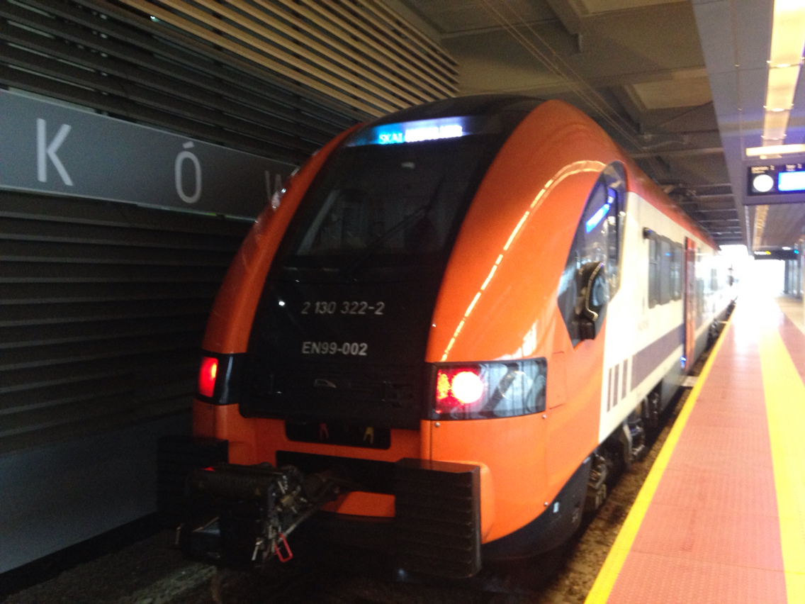 クラクフ空港からクラクフ中央駅間を利用しました。行きはホームにあった券売機で購入しましたが、赤い券売機はコインとカードのみ、青色の券売機は紙幣も可能でしたが、おつりはすべてコインででてきました。車内で検札あります。車内でも購入可能でこちらの方が簡単です。電車内は綺麗で20分で着き快適でした