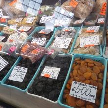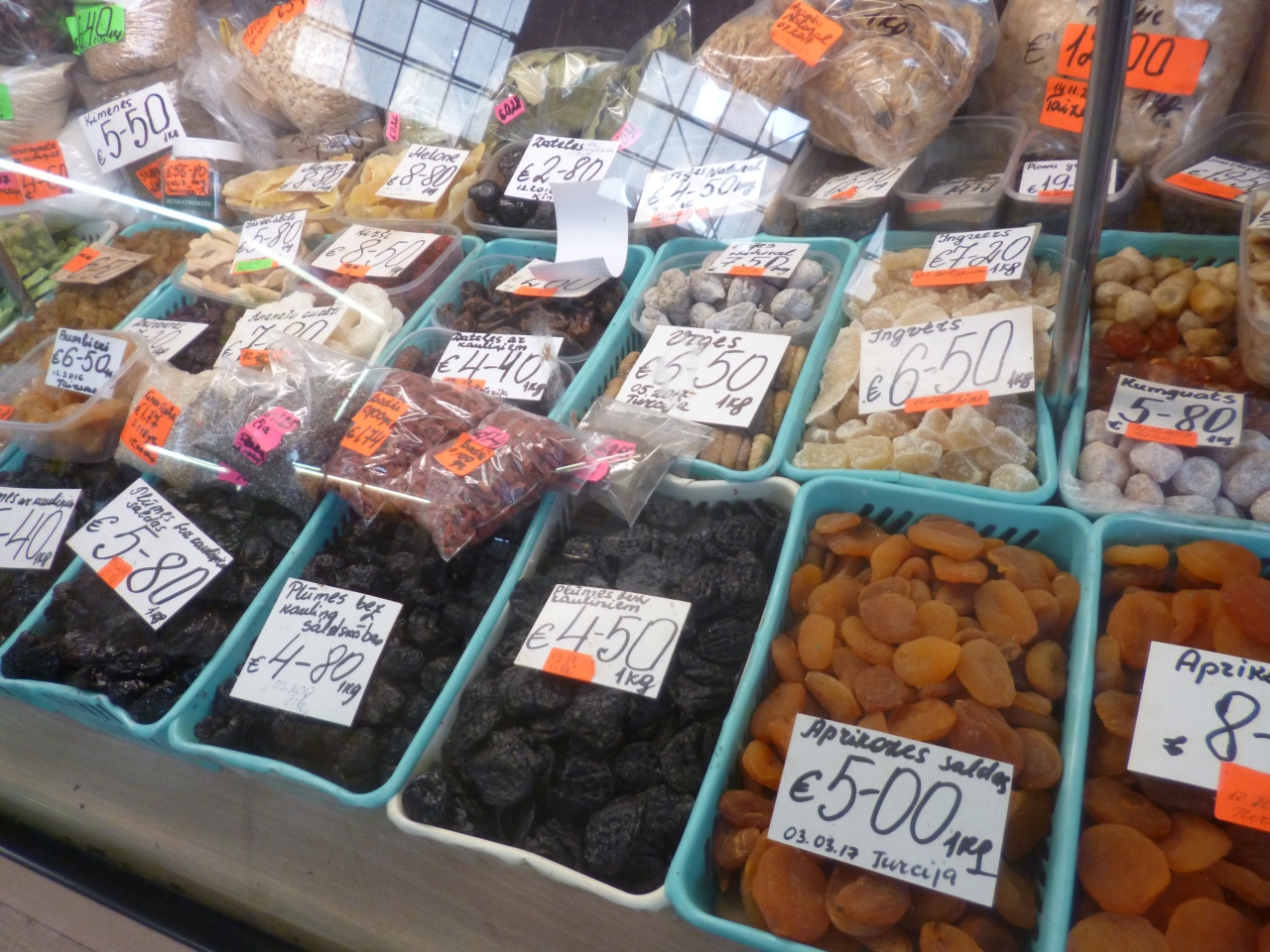 市場は午前中で終わってしまうところも多いですが、夕方に訪ねたときでも品数が豊富。買い物客も大勢でした。食品の他、衣料品、生花など幅広い品ぞろえでした。ラトビアの食卓では保存食がかかせないのか、燻製された魚やピクルス、チーズなどが目立ちました。珍しいものがたくさんあって、見飽きませんでした。