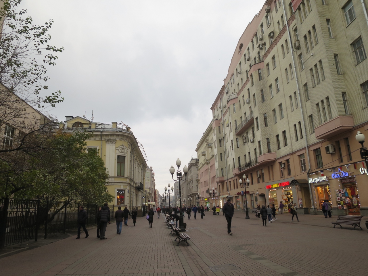 モスクワのショッピングストリートとのことですが、観光客相手の店ばかりで正直面白くありませんでした。ロシア人相手の店ばかりであればいいのですが、定番の食堂や欧米資本の店、そして土産物店が軒を連ねているだけです。