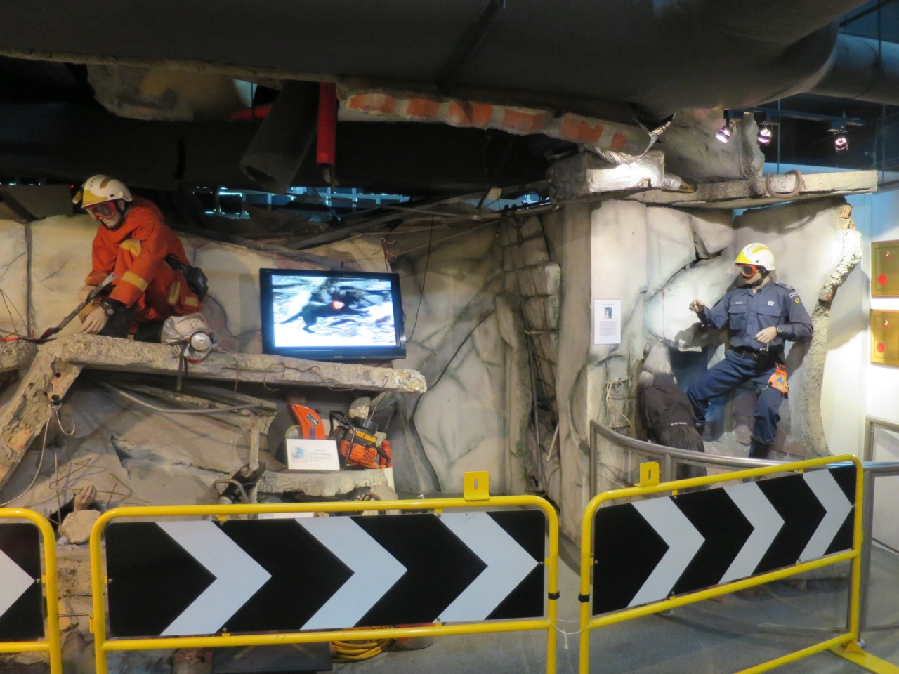 中の展示は、シンガポールの消防設備の解説や歴史、散水の体験などがある。
