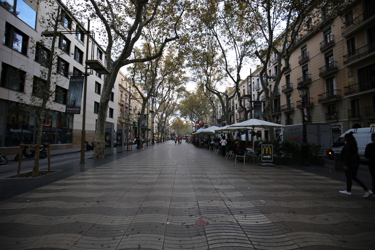カタルーニャ広場からコロンブスの塔までの通りは常に観光客でごった返していました。
