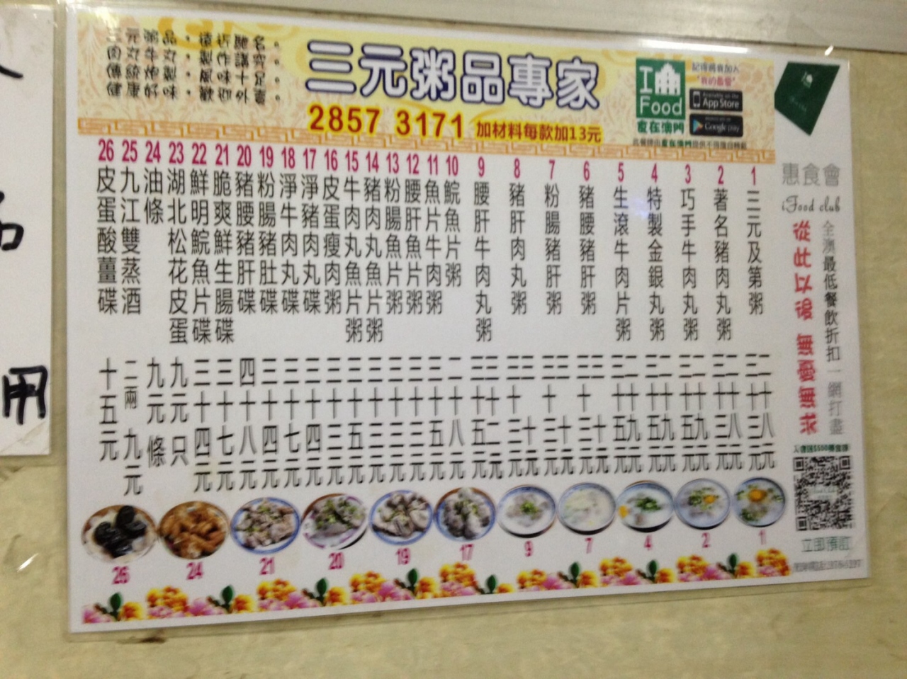 あらかじめ 食べたいお粥を 紙に書いてきてあったので