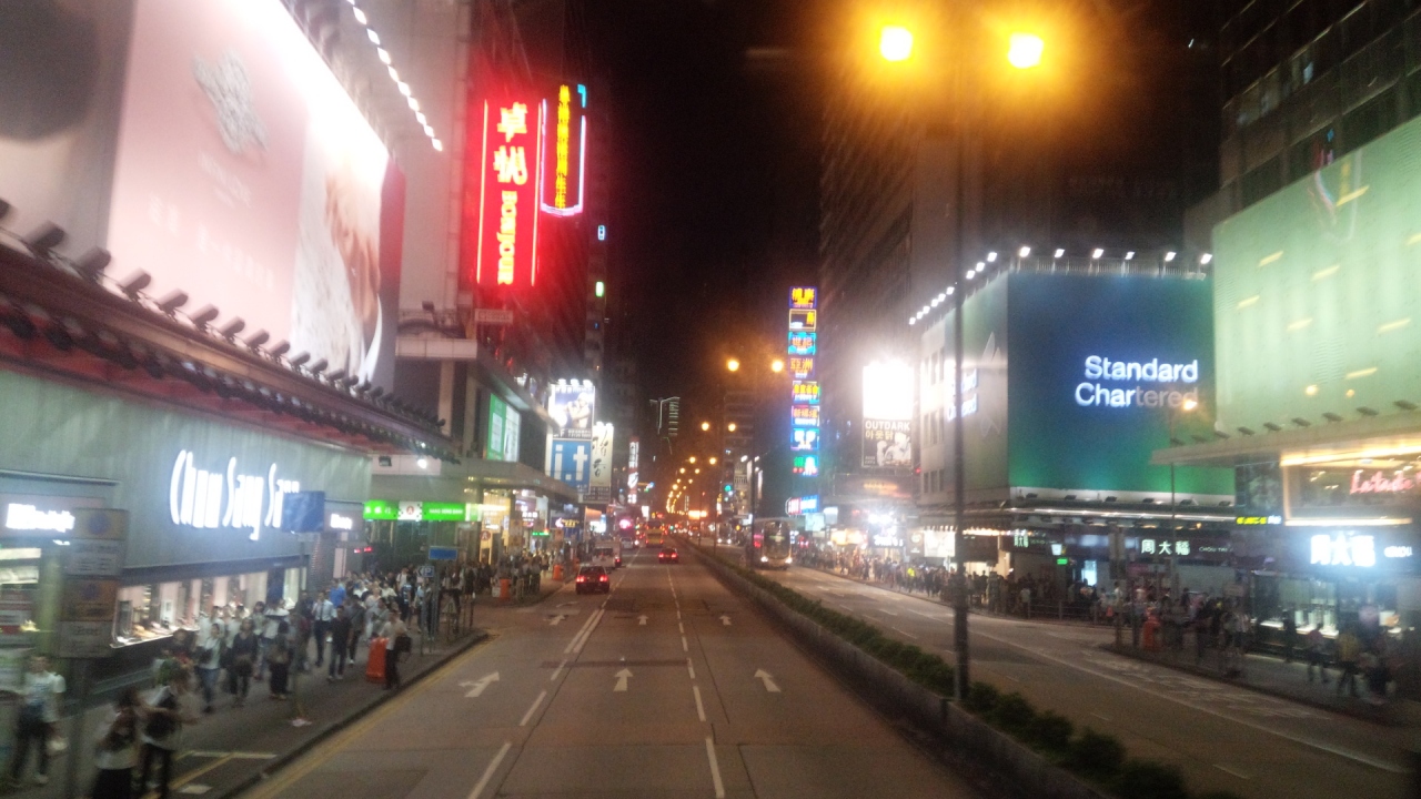 ネオン輝く夜のネーザン・ロードの光景を楽しむことができました。