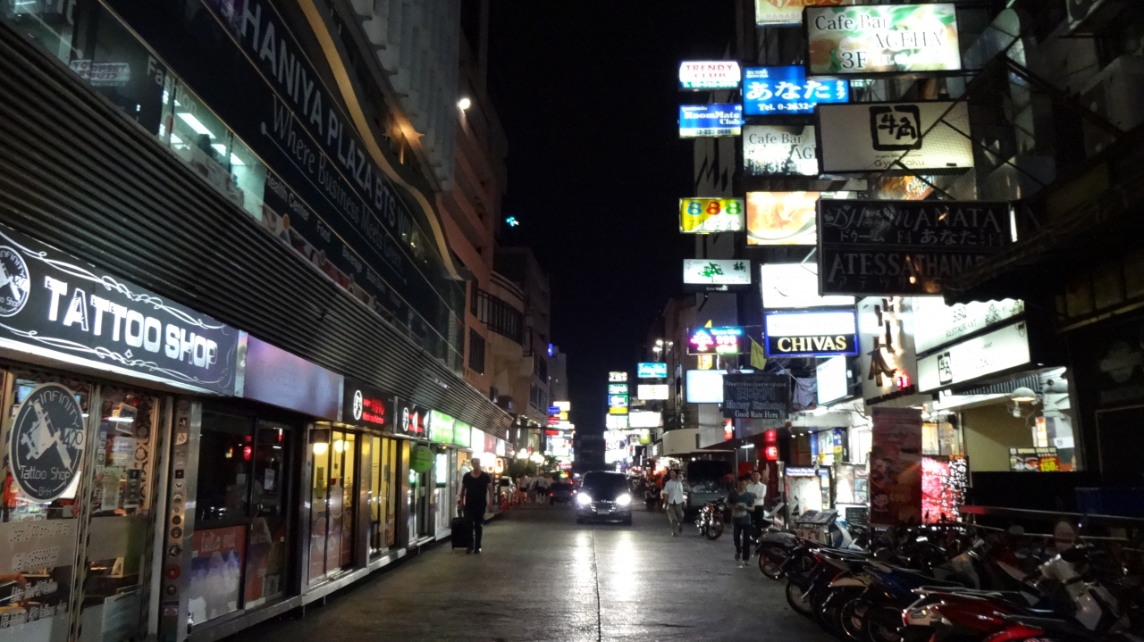 夜のタニヤ通りはタイに来るたび毎回訪れていますが、昼のタニヤ通りは今回初めて通りました。夜のひと通りや店のネオン、カラオケの女性達などがいないと随分寂しい雰囲気です。両替をしたり食事をとるには便利ですが、昼と夜のギャップがすごいです。